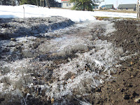 雪解けは進んだものの、気温は氷点下まで下がるので、朝は霜柱ができたり、氷がはったりします。