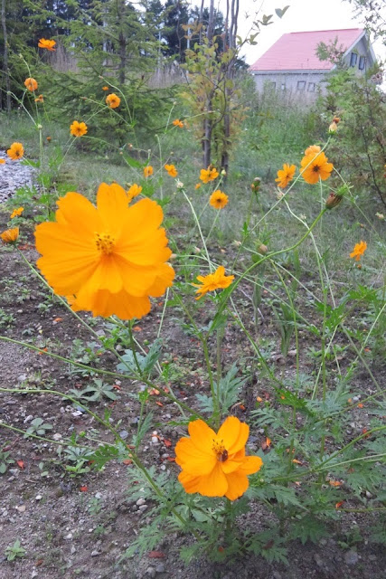 よそさまのコスモスはどんどん大きくなるのに、こちらは長いことダンマリ。採取した種から育てたのが原因かと思いましたが、今は「普通」になりました。