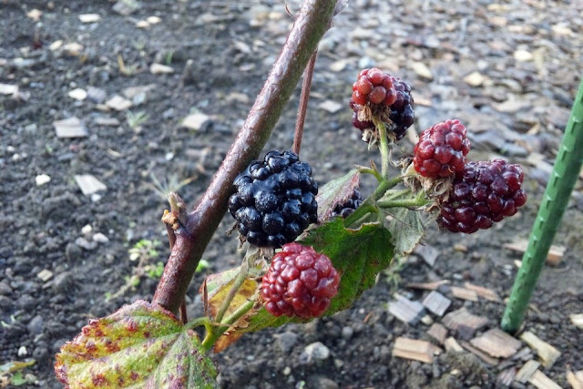 11月3日のブラックベリー。緑の棒が支柱。